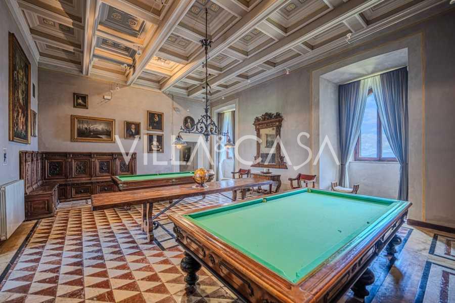 Wchodząc do zamku, zanurzacie się w atmosferze luksusowych wnętrz. Tutaj marmurowe podłogi, cenne freski, sklepione sufity, wyrafinowany wystrój ścian i wdzięczne posągi łączą się w harmonijny obraz, odtwarzający minione epoki w ich najwyższym wyrazie. Wspaniałe pokoje zdobią eleganckie łuki i ogromne okna, które otwierają oszałamiające widoki na okoliczne wzgórza.