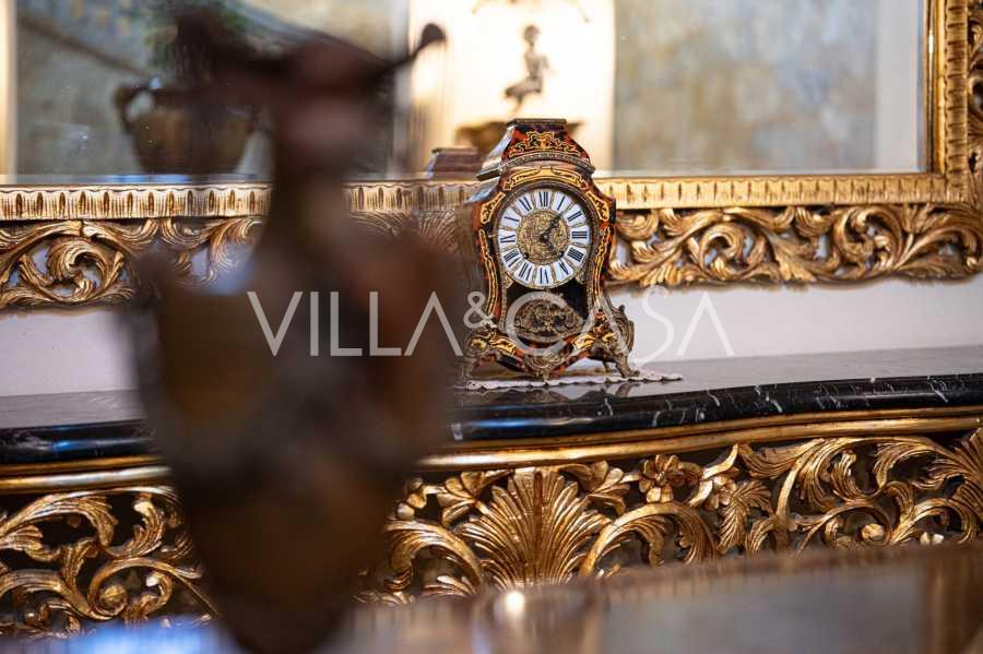 Na parterze rezydencji można przejść się po wspaniałej galerii, zajrzeć do przestronnych sal lub przytulnych salonów, które zanurzają gości w atmosferze arystokratycznego życia minionych czasów. Drugie piętro – piano nobile – to kolejna luksusowa galeria, biblioteka z przytulnymi parkietowymi podłogami, jadalnie i sale zachowujące elegancję minionych wieków. Wyżej znajdują się pokoje i sypialnie, wśród których wyróżnia się pokój z łazienką i sauną, jakby stworzony do relaksu i regeneracji sił.