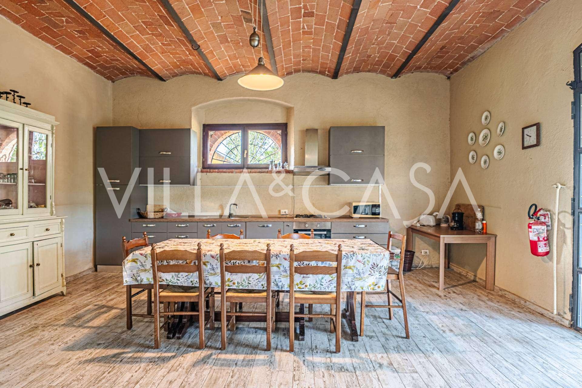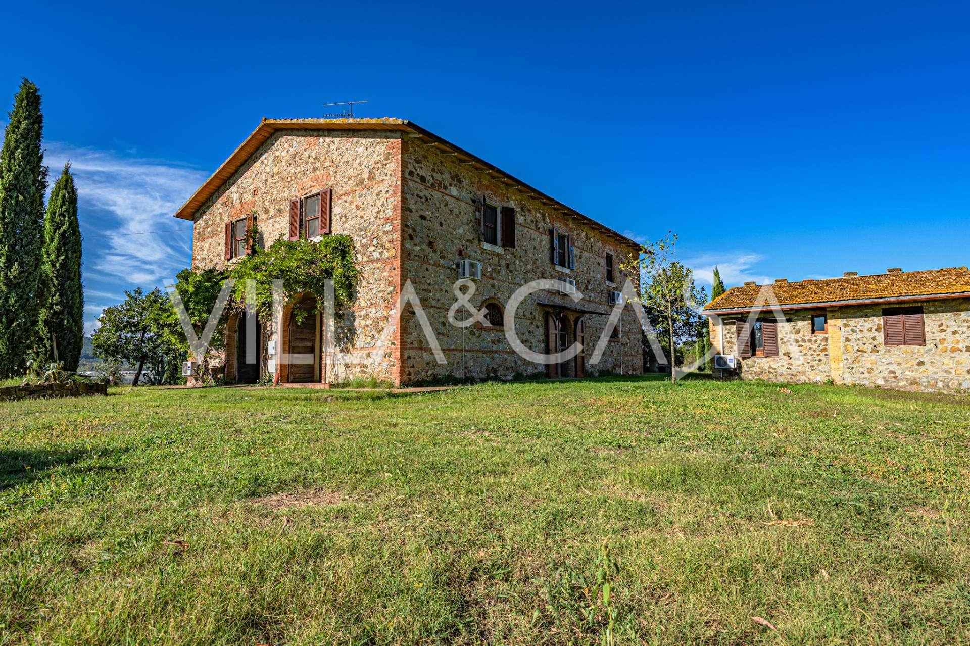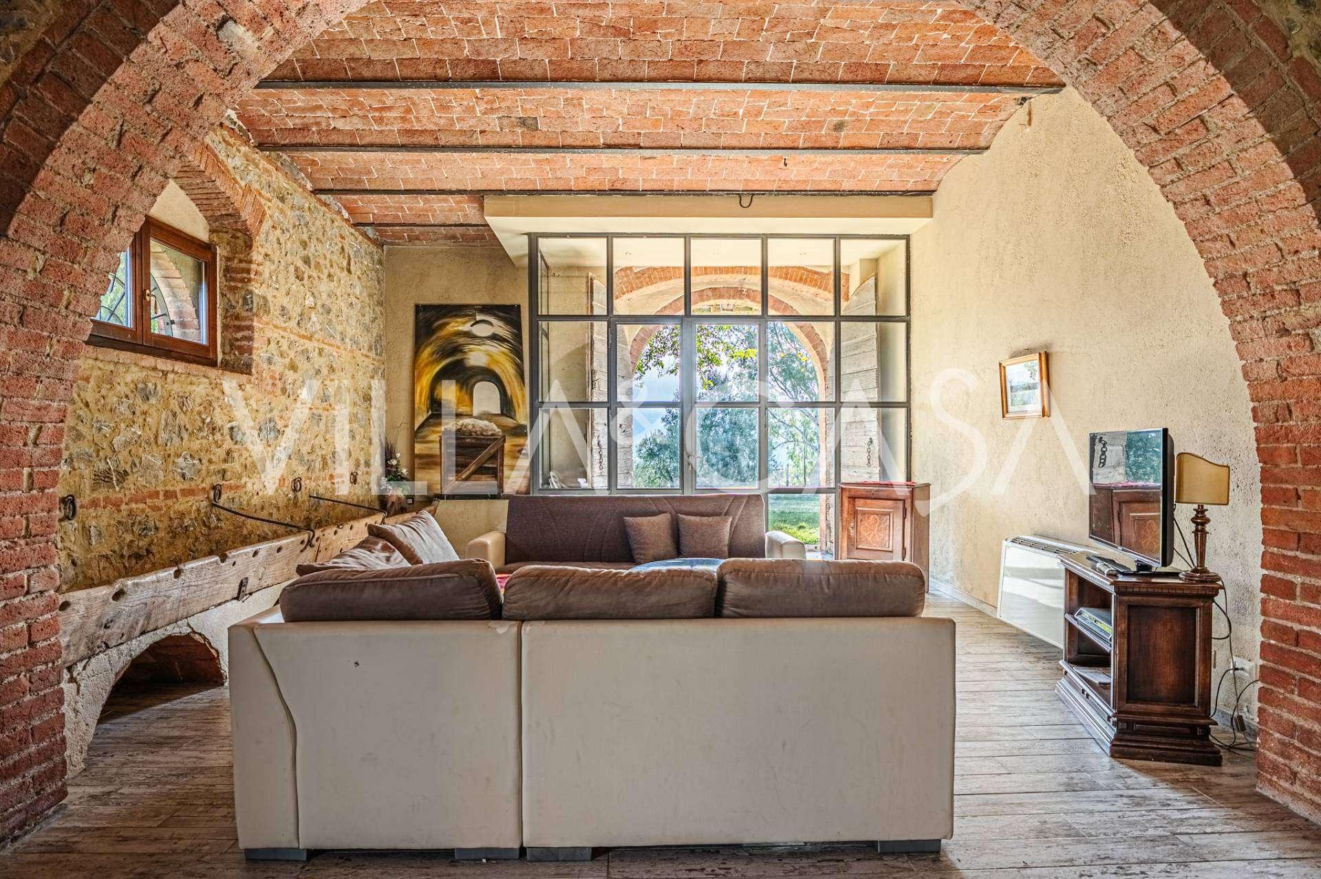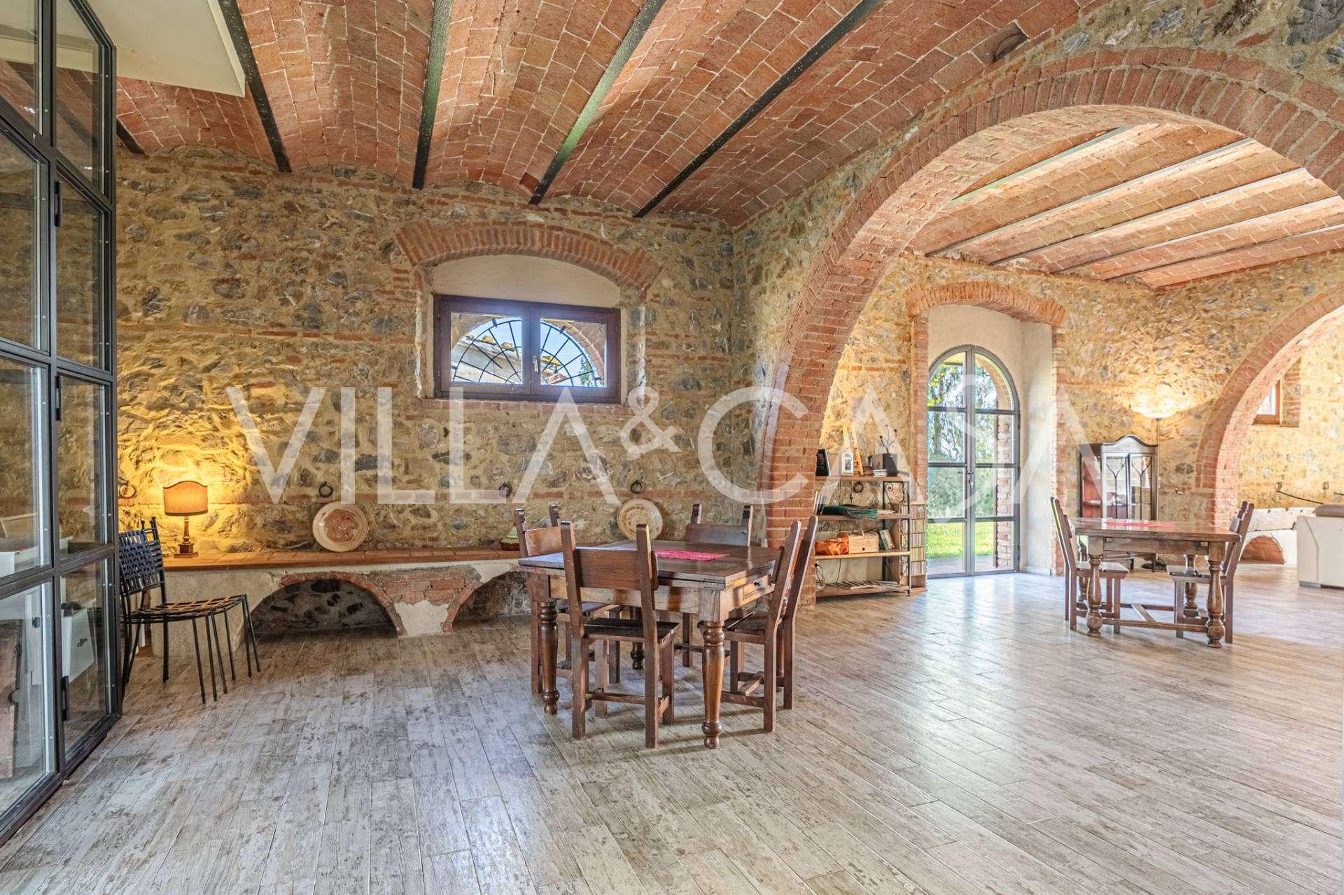 Rozległy teren o powierzchni około 30 hektarów otacza dom, przekształcając go w prywatne schronienie pośród zieleni toskańskich krajobrazów. Historyczna kamienna budowla, starannie odrestaurowana, teraz stanowi wyrafinowany kompleks hotelowy, gdzie każdy detal odzwierciedla toskańską elegancję. Wokół rozciągają się zadbane ogrody z pachnącymi krzewami i kwiatami.