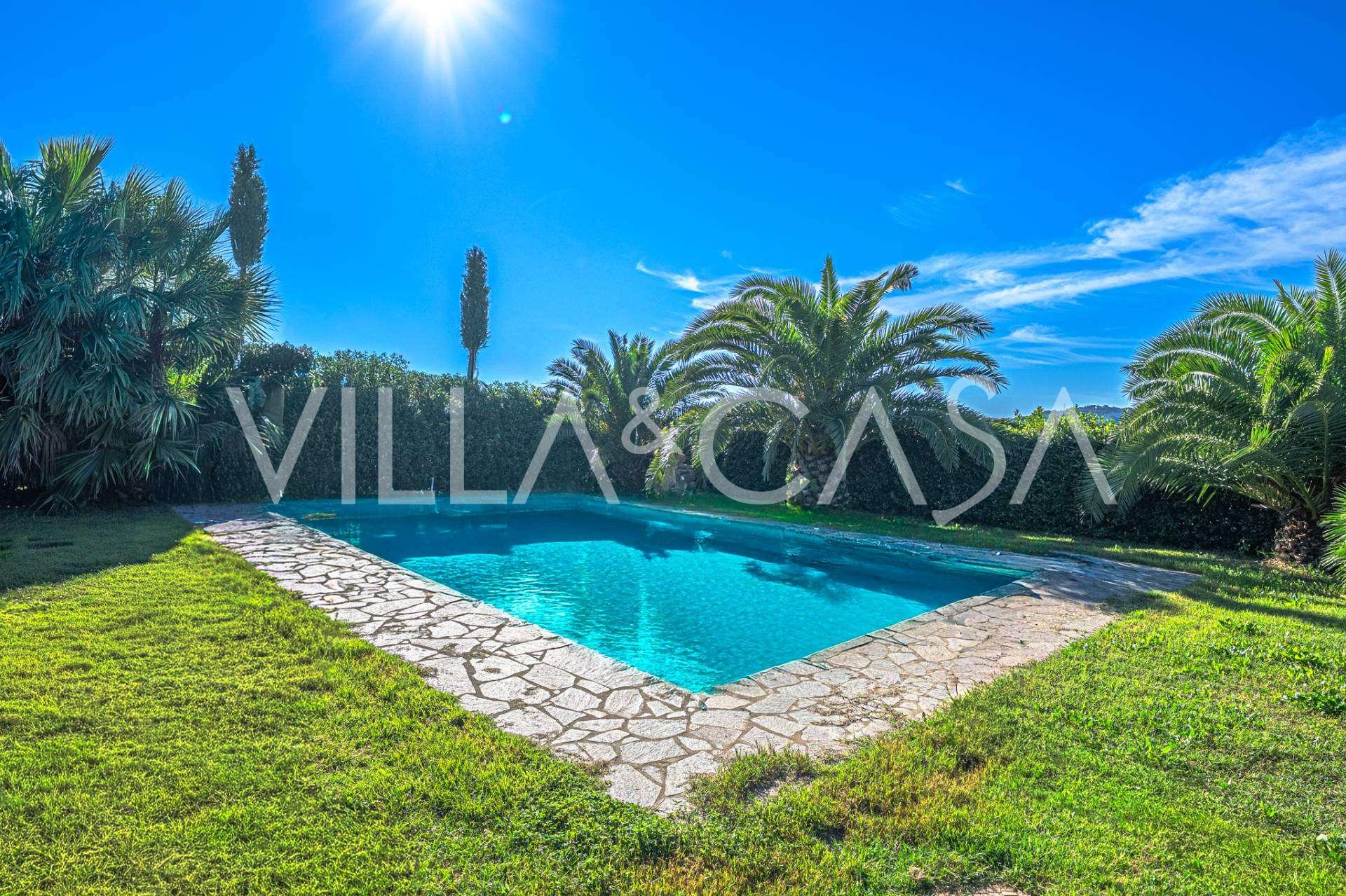 Na zewnątrz, pośród zadbanych trawników, zorganizowano ustronne strefy wypoczynku z eleganckimi meblami ogrodowymi i miejscem na grill, idealnym na kolacje na świeżym powietrzu i wieczorne spotkania. Z ogrodu do śródziemnomorskich krajobrazów prowadzą malownicze ścieżki, zachęcające do spacerów. Miłośnicy sportu docenią bliskość dwóch prestiżowych klubów golfowych, do których można dojechać w kilka minut.