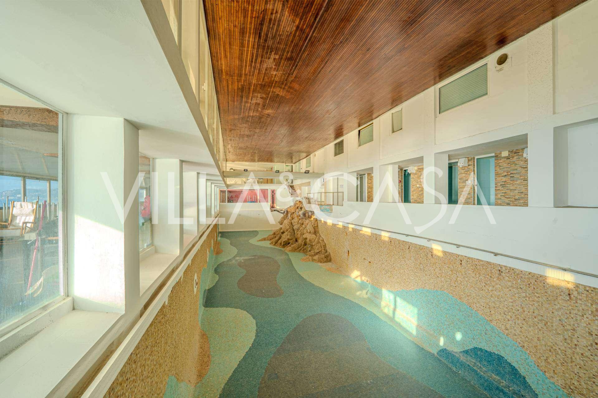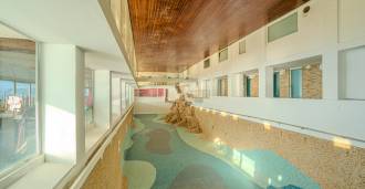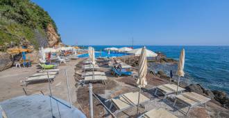 Gościom oferowany jest kryty basen o długości około 25 metrów z podgrzewaną wodą morską. Hotel posiada również prywatną plażę z bezpośrednim dostępem do morza, obejmującą basen z wodą morską, strefę z leżakami i parasolami oraz kamienistą plażę, przeznaczoną dla 100–110 osób, zarówno dla gości hotelowych, jak i odwiedzających z zewnątrz. W sezonie letnim otwierany jest bar z przekąskami oraz centrum piękności i talasoterapii.