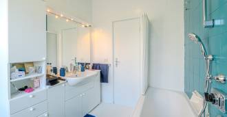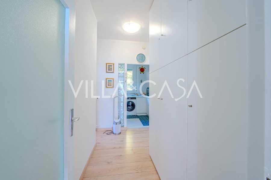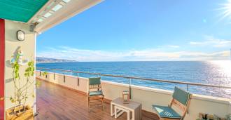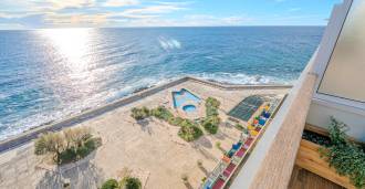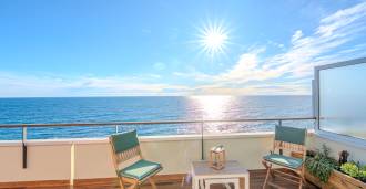 Na pierwszej linii brzegowej morza oferowany jest penthouse z dużym tarasem o powierzchni 143 m² (123 m² powierzchni mieszkalnej + garaż 20 m²). Ten zadbany i w pełni odnowiony w 2023 roku penthouse znajduje się na 5. piętrze budynku z konsjerżem. Mieszkanie jest zorientowane na południowy wschód i posiada przestronny taras, który tworzy jasną i przytulną atmosferę.