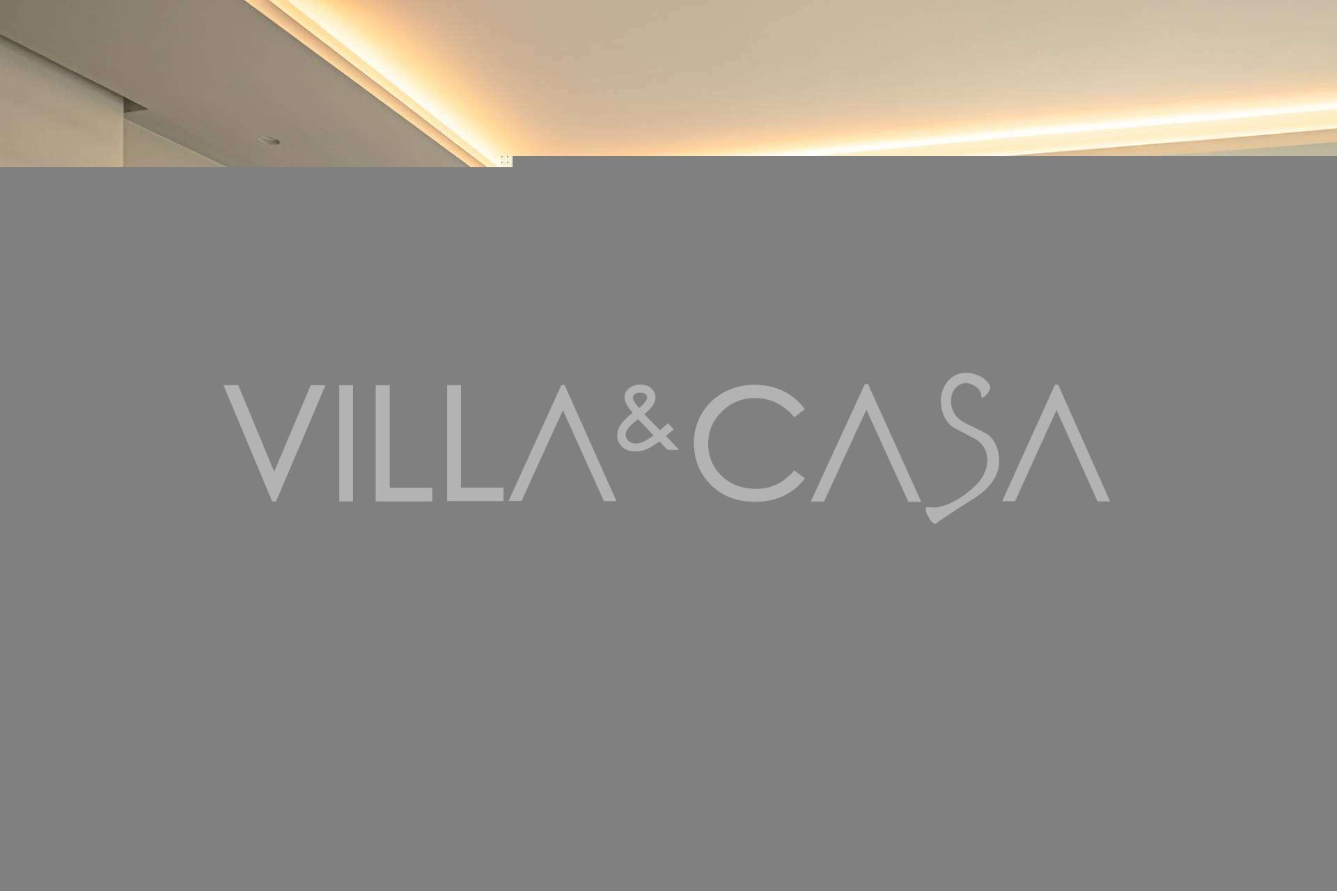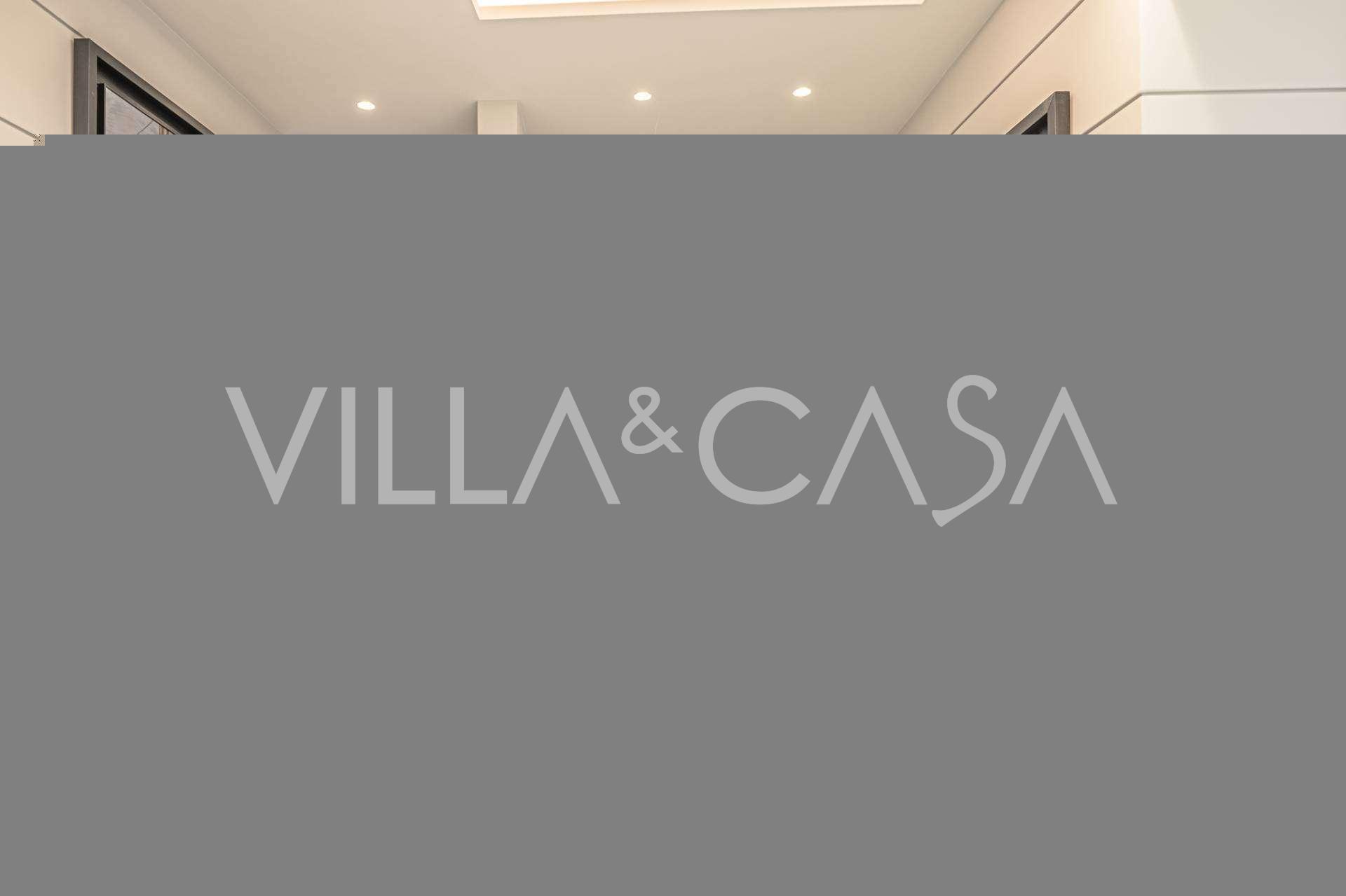 Wnętrze wyróżnia się przestronnymi i jasnymi pomieszczeniami, wykończonymi materiałami najwyższej jakości i wyposażonymi w nowoczesny zintegrowany system zarządzania domem, umożliwiający inteligentne sterowanie oświetleniem, ogrzewaniem i chłodzeniem podłogowym, klimatyzacją i bezpieczeństwem za pomocą zaawansowanego systemu alarmowego.
