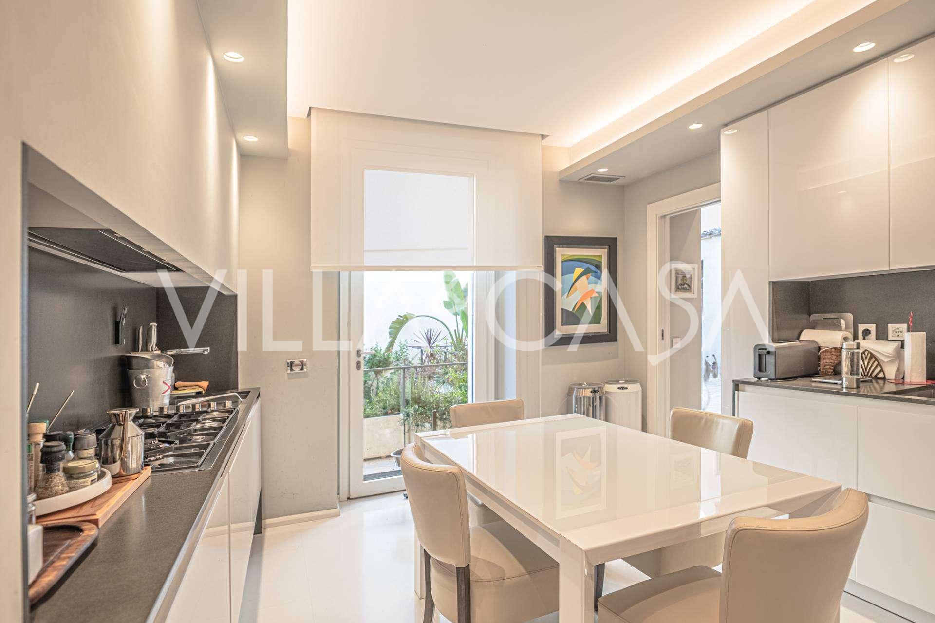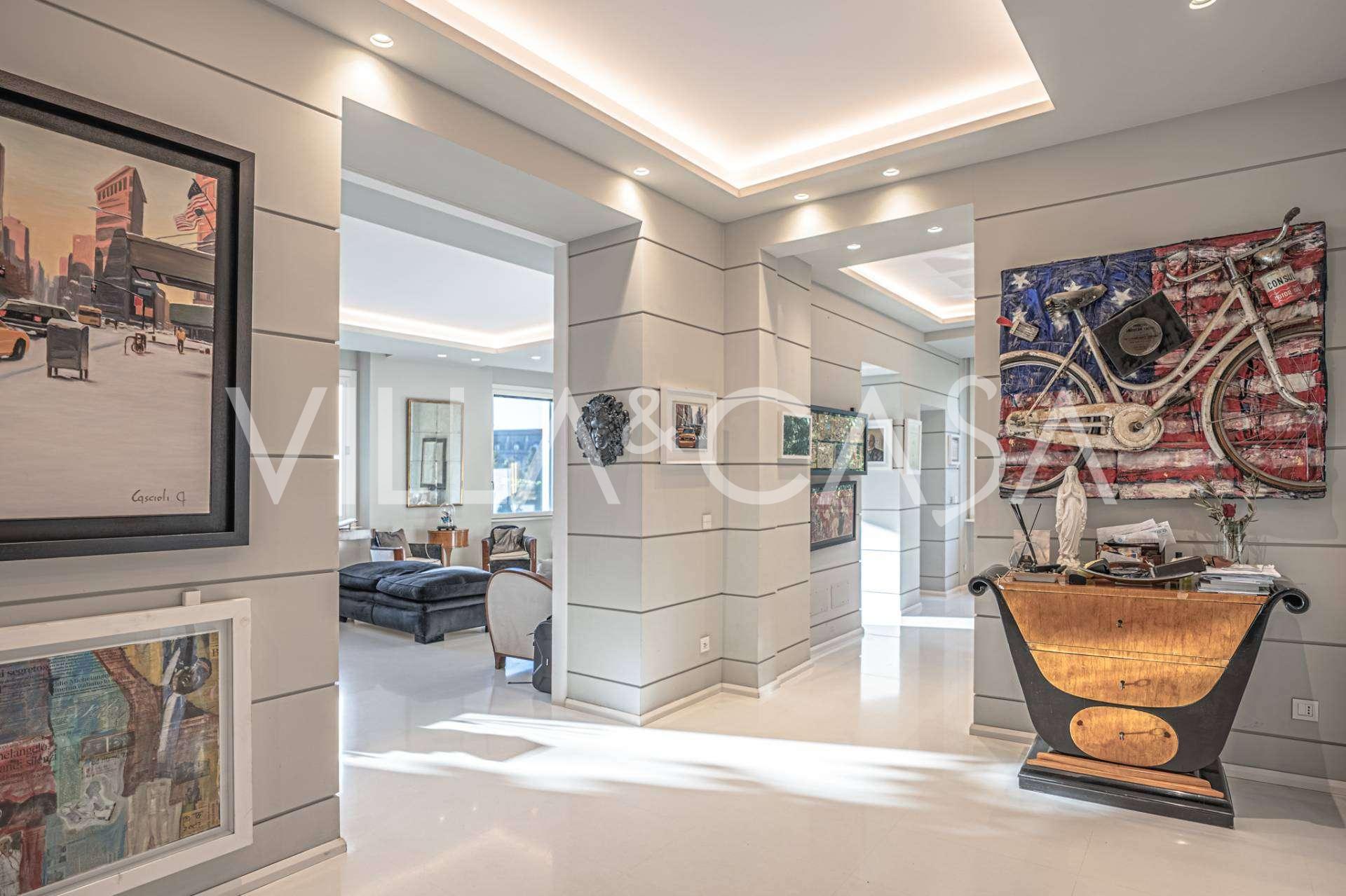 Powierzchnia willi wynosi 597 metrów kwadratowych, jest rozmieszczona na czterech piętrach, harmonijnie połączonych nowoczesną wewnętrzną windą, zapewniającą prywatność i wysoki poziom komfortu.