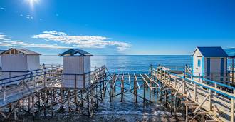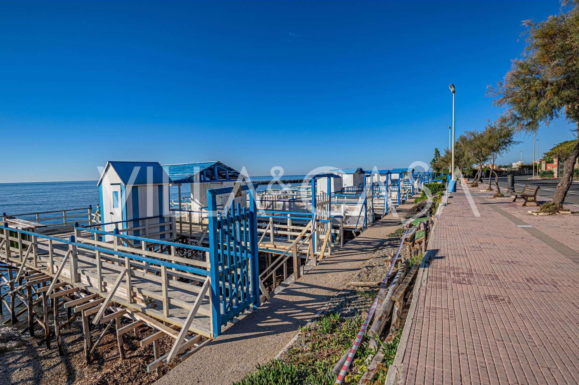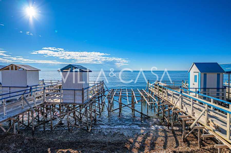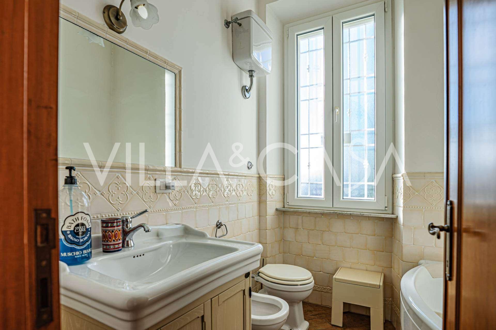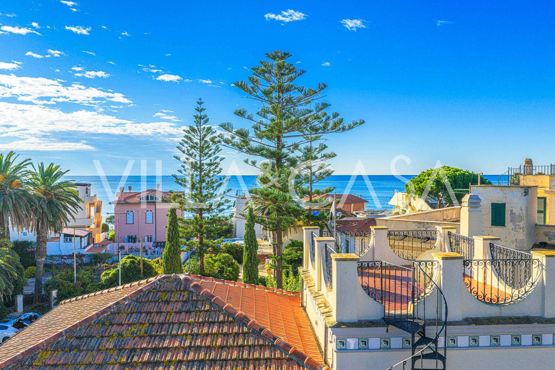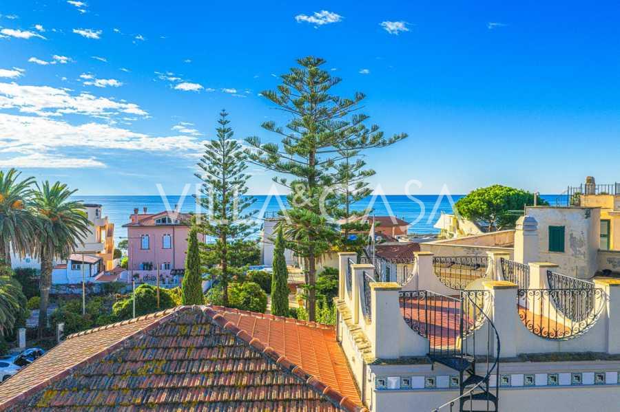 A soli cento metri dalla costa azzurra del Mar Tirreno, nel prestigioso resort di Santa Marinella, si trova una splendida villa di 153 m² che incarna l'elegante stile marittimo italiano. Questa raffinata residenza con vista panoramica sul mare è disposta su due livelli e combina perfettamente accoglienza, comfort e un'atmosfera di tranquillo relax al mare.