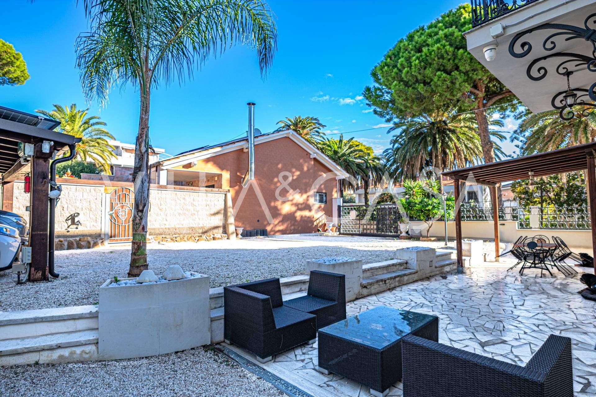 Il territorio circostante è immerso nel verde, creando un'atmosfera di oasi isolata: un giardino curato, una zona barbecue accogliente, ideale per ricevere ospiti, e un ampio parcheggio privato per quattro auto. Tutti i dettagli dello spazio sono stati pensati per il massimo comfort e per godere appieno della vita al mare.