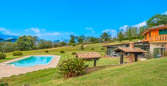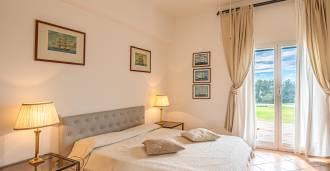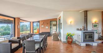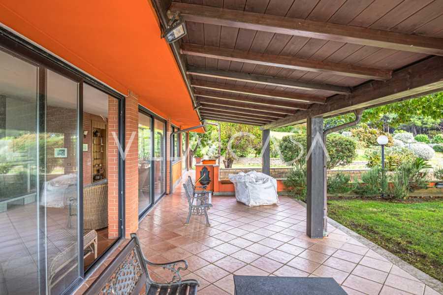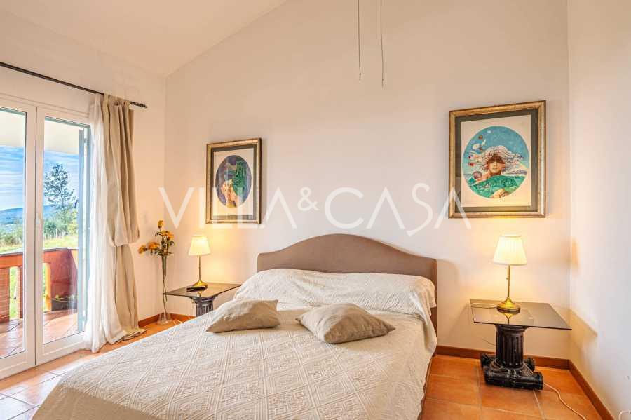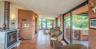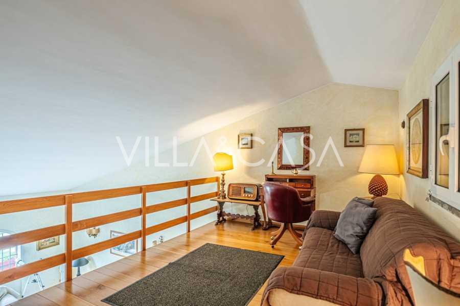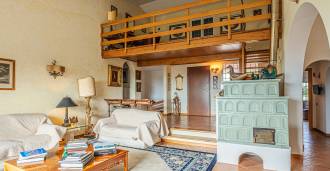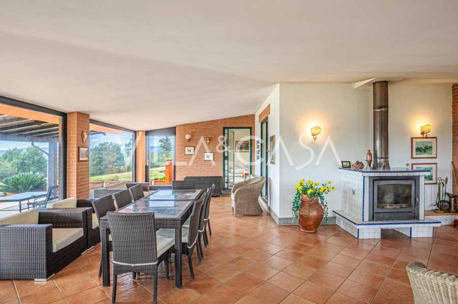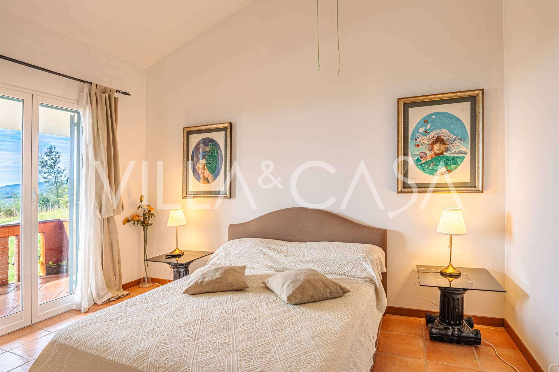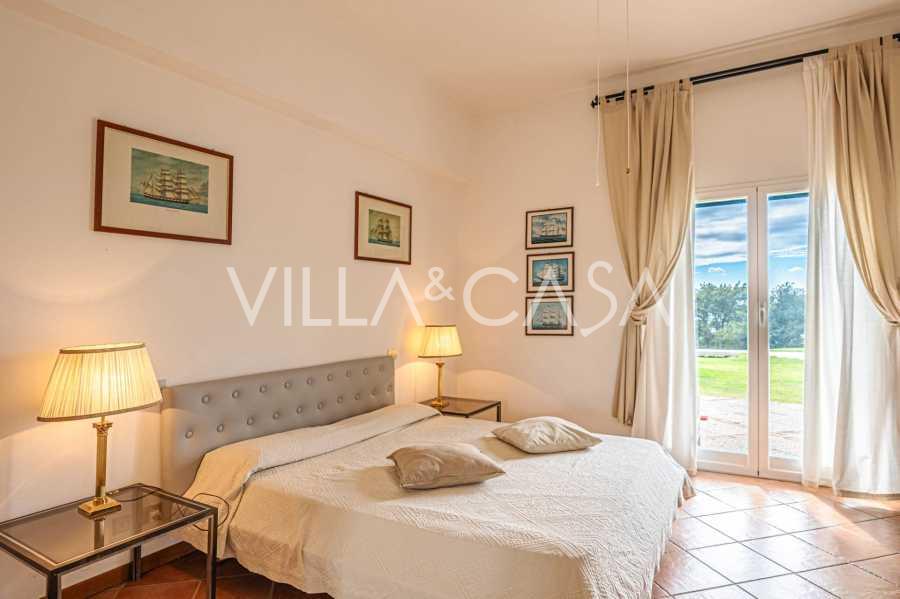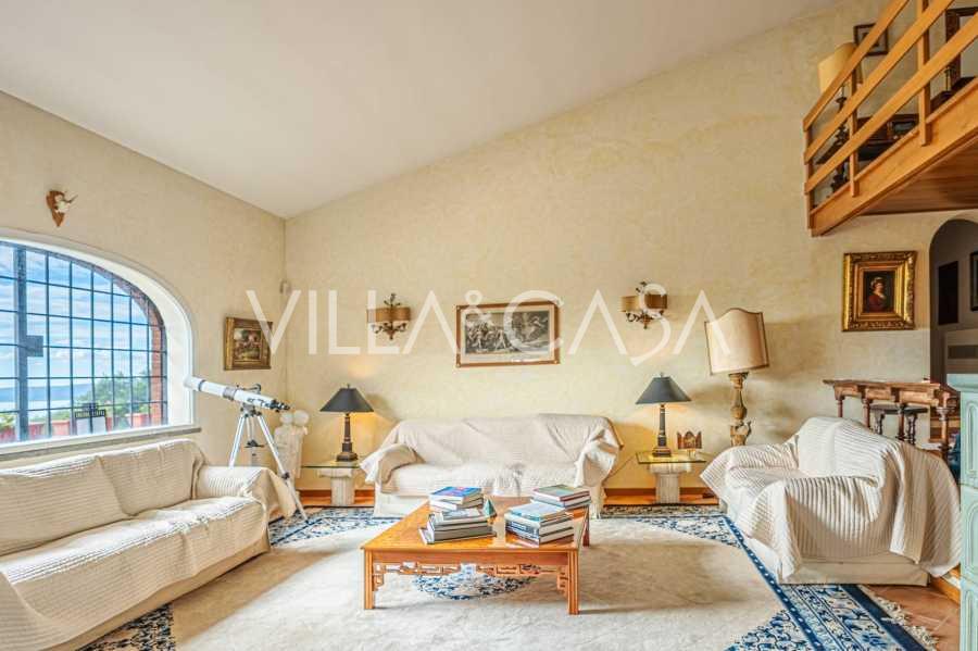 La villa dispone di 4 camere da letto e 4 eleganti bagni, che permettono di sistemarsi comodamente e sentirsi a proprio agio. Gli interni sono curati nei minimi dettagli: un maestoso soggiorno con soffitto alto e camino, un angolo accogliente con divano sul soppalco, una spaziosa cucina, lavanderia, due luminose verande con finestre panoramiche che si affacciano sul parco, oltre a un'area giochi con biliardo, freccette, ping pong e calcio balilla.