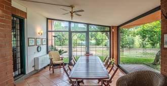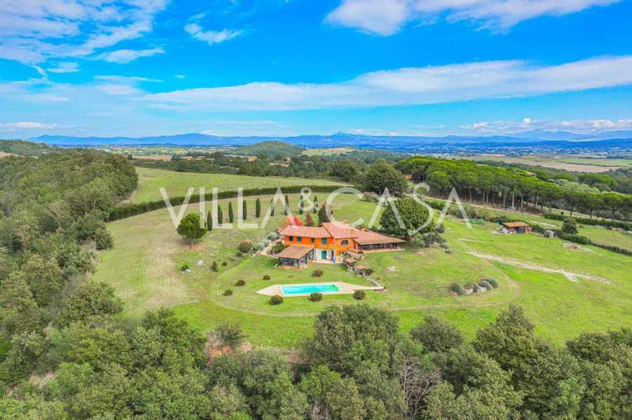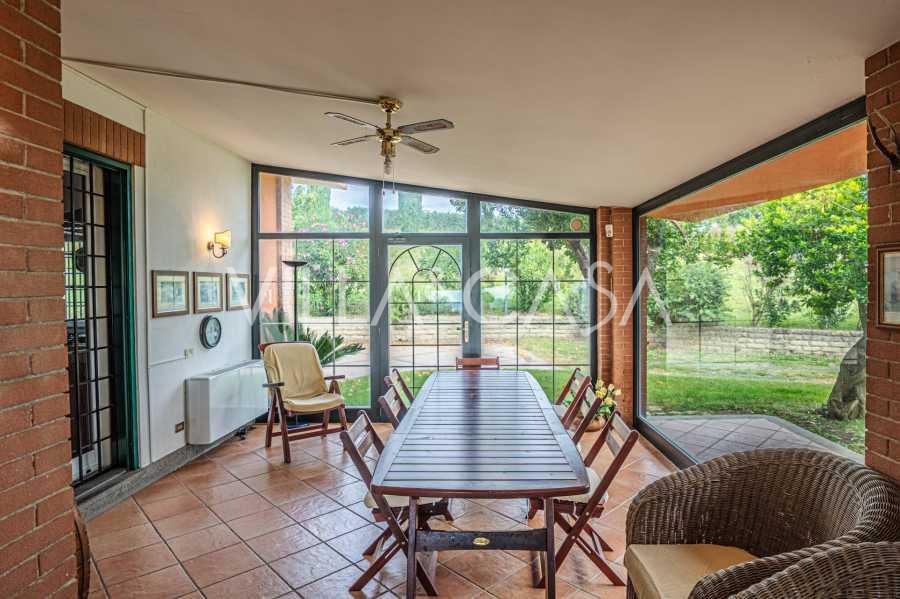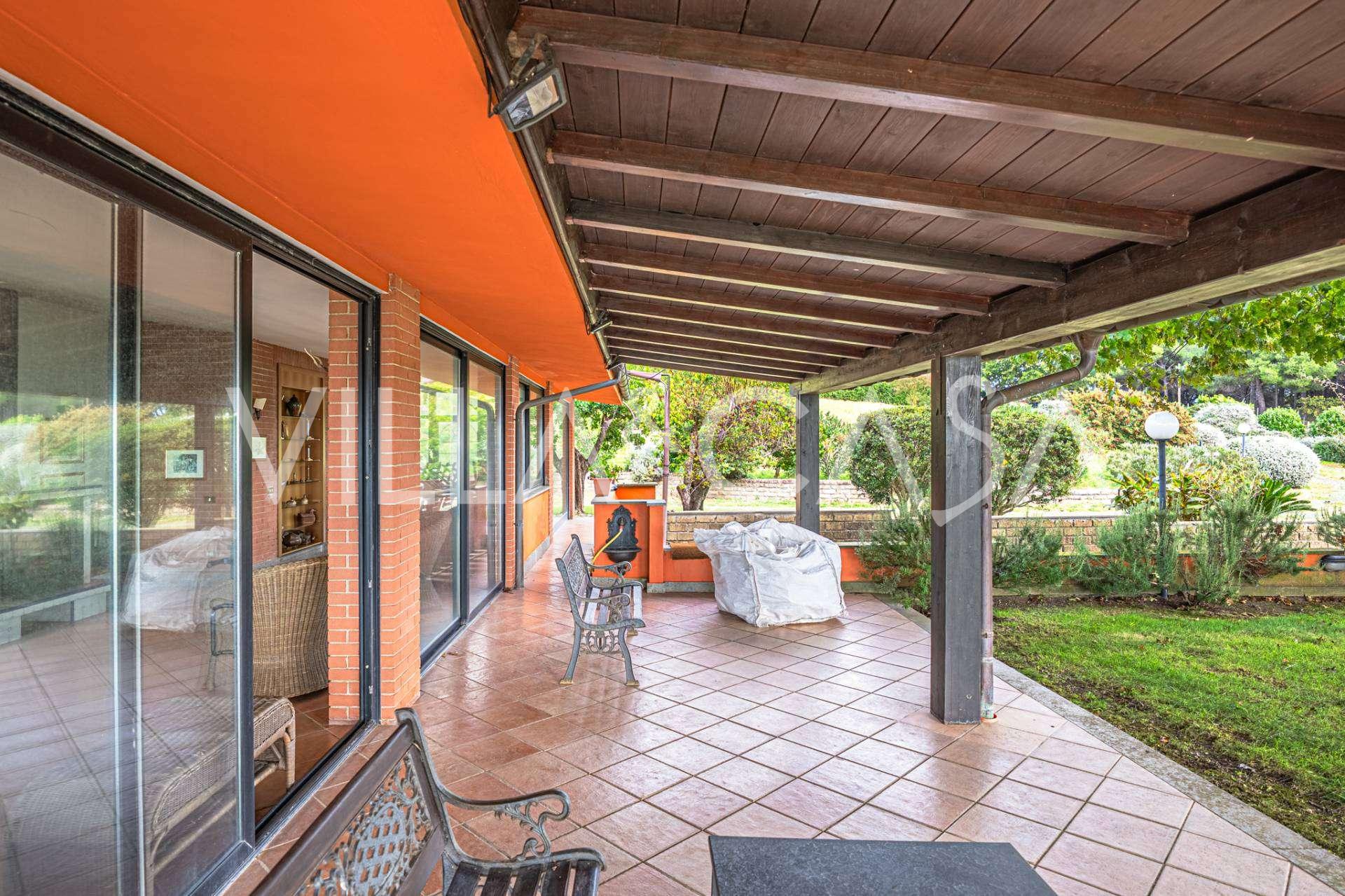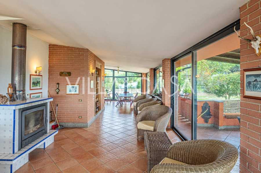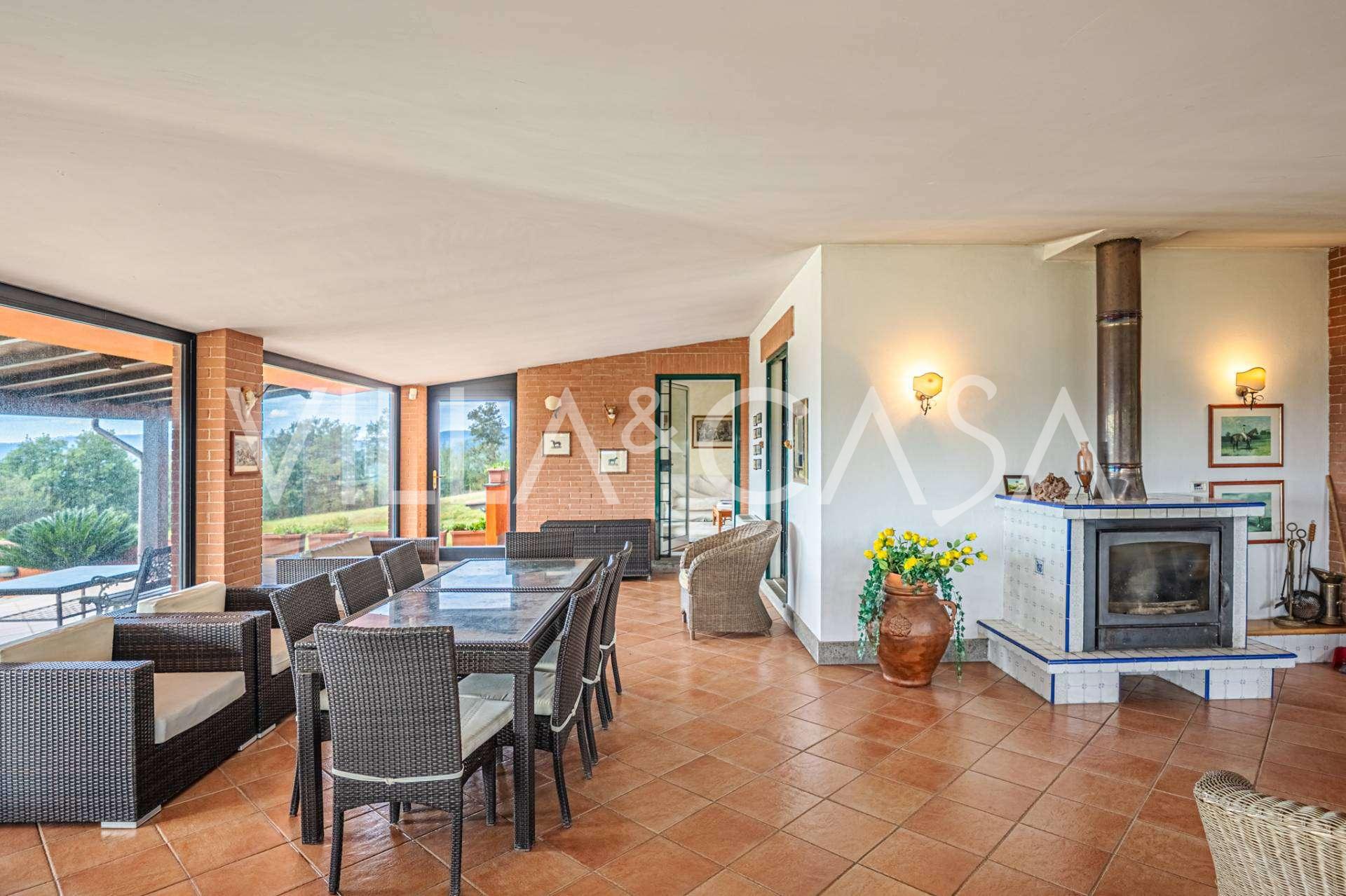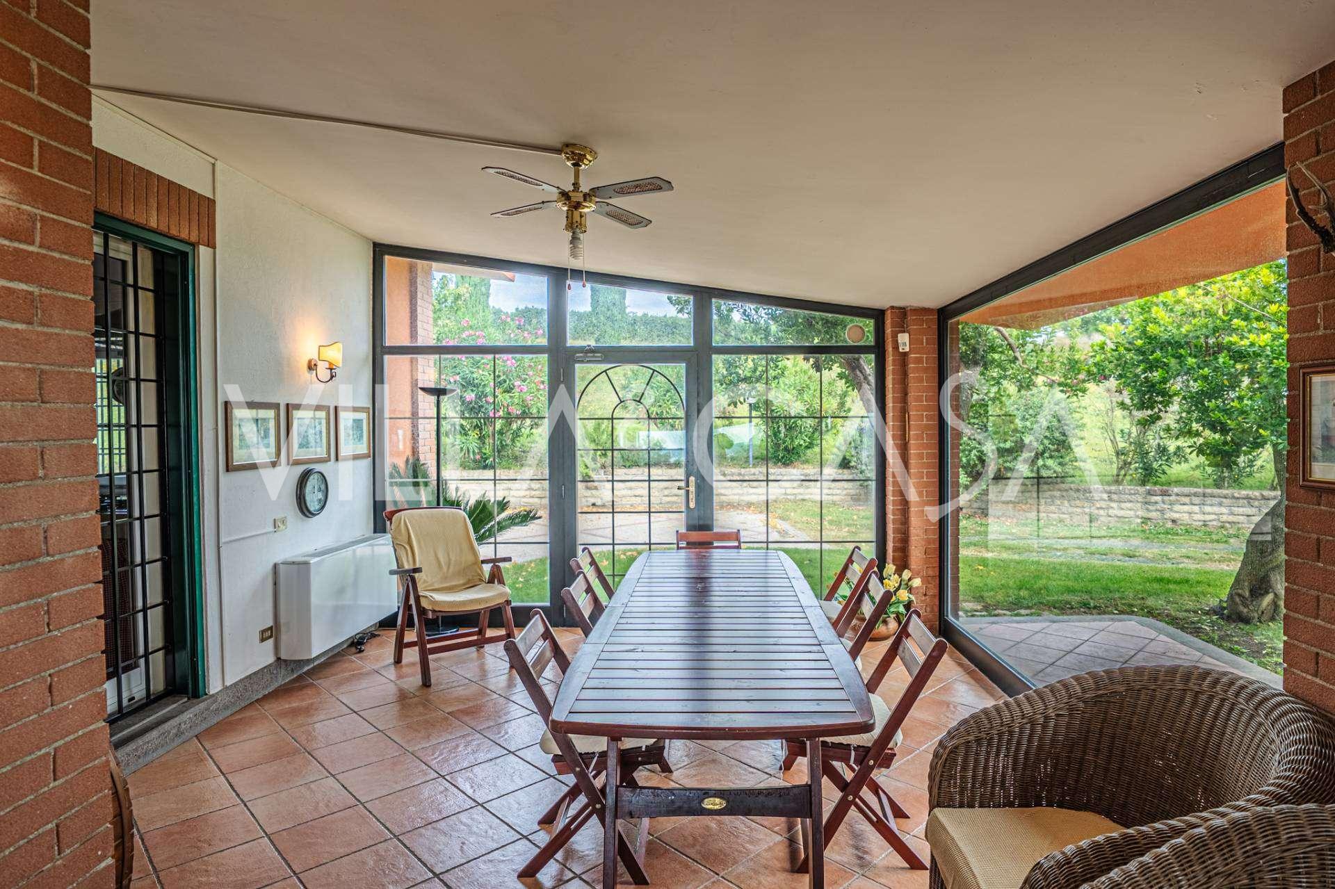 Questa raffinata e appartata villa a Trevignano Romano, con una superficie di oltre 500 m², è circondata dal verde di un parco privato di oltre tre ettari. Il terreno è completamente recintato e adornato con una ricca vegetazione mediterranea, creando un'atmosfera di completa tranquillità e armonia.