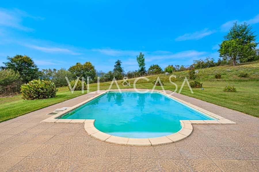 All'esterno, gli ospiti sono accolti da un magnifico parco con vialetti curati e aree ombreggiate. Al centro si trova una pittoresca piscina con lettini e ombrelloni, accanto a una cucina estiva, area barbecue e forno a legna per pizza, dove è possibile godere di cene sotto il cielo stellato.