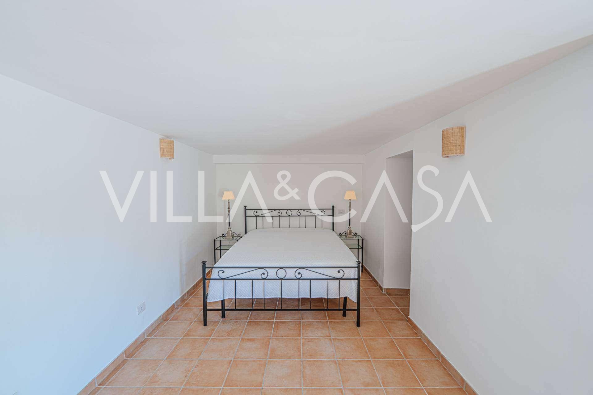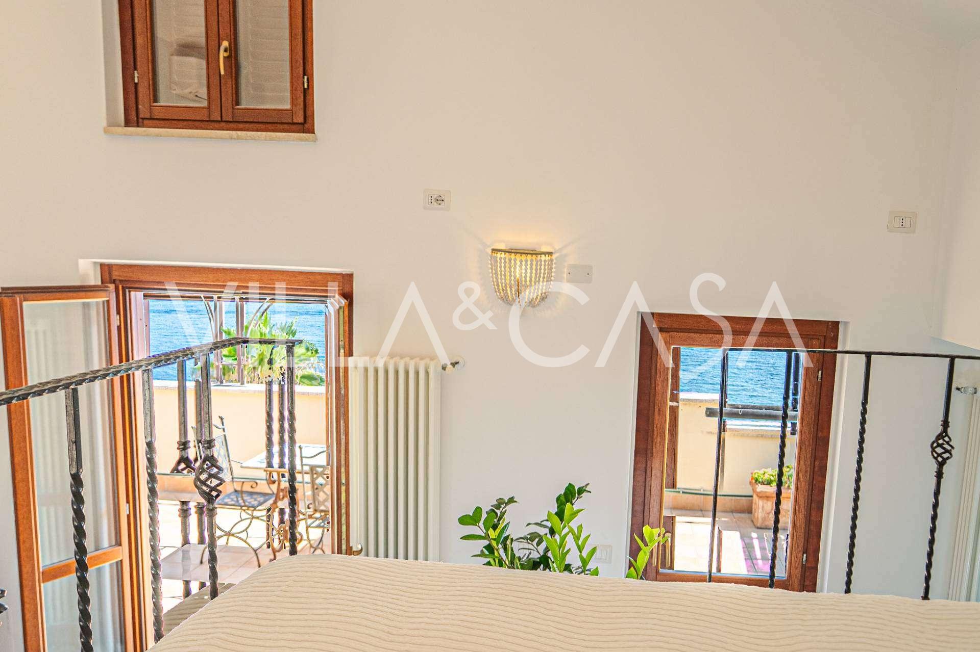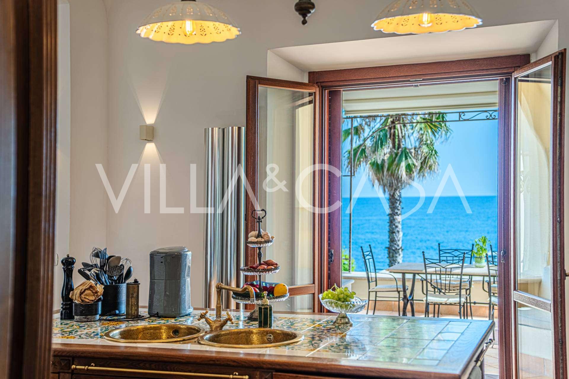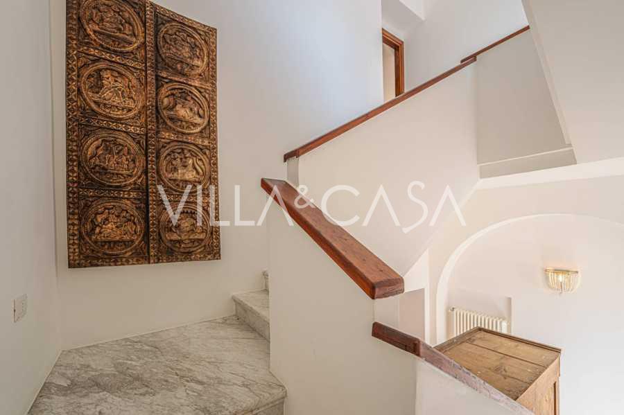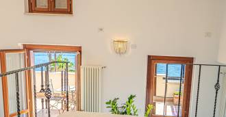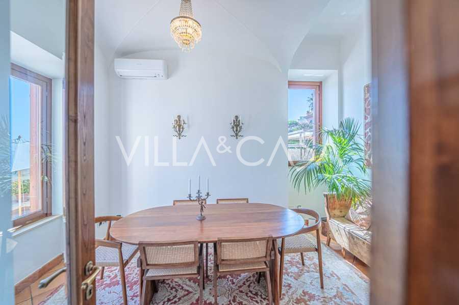 Okna oferują panoramiczny widok 180 stopni na morze, niebieski horyzont wypełnia każde wnętrze i rozciąga się aż do szerokich panoramicznych tarasów. Wnętrza, z wysokimi sufitami ponad trzy metry, terakotowymi podłogami z tamtych czasów, marmurowymi schodami i kominkiem, tworzą atmosferę wyrafinowanej, ponadczasowej elegancji.
