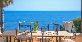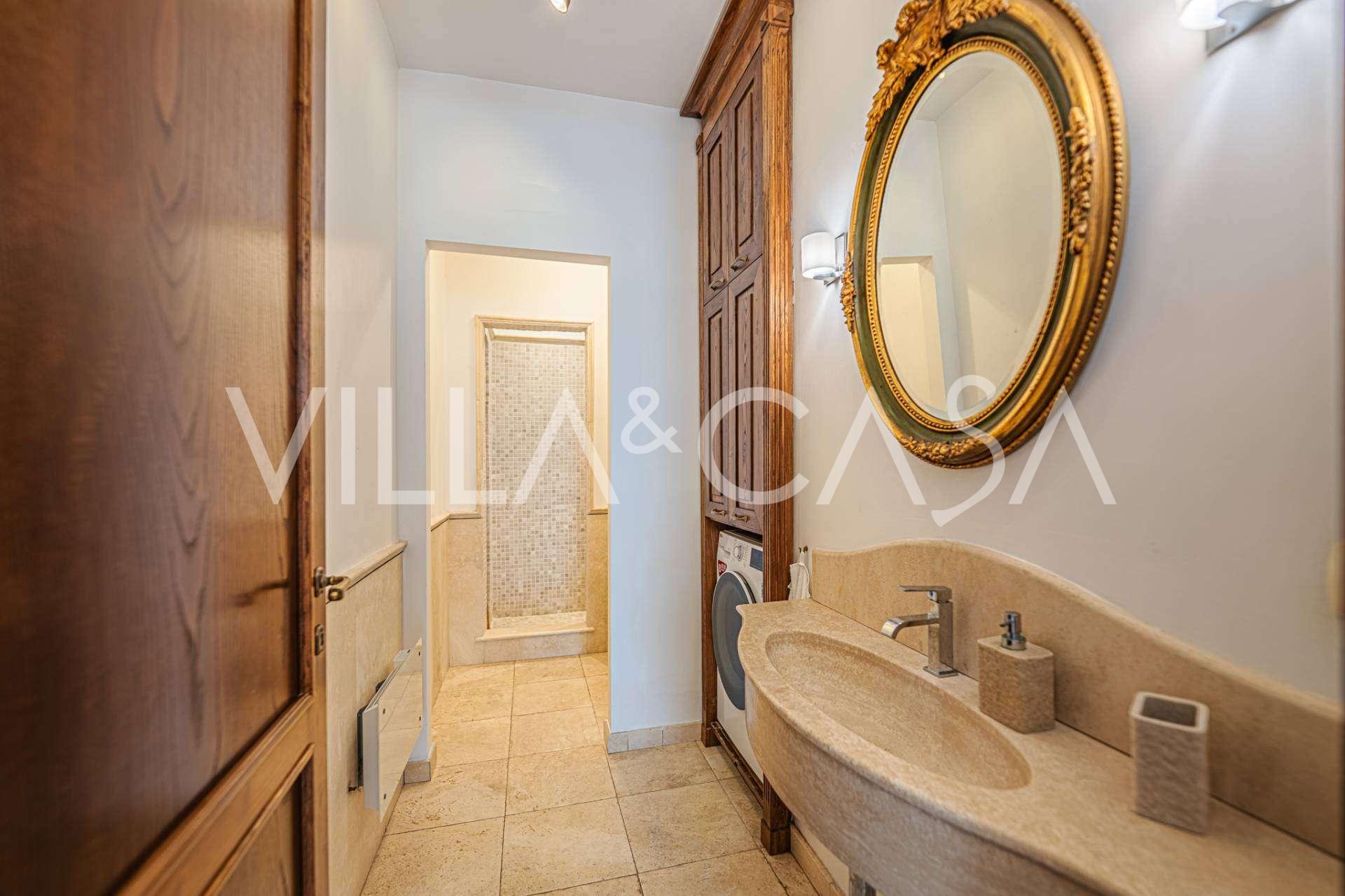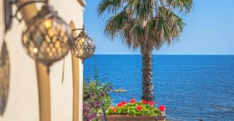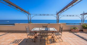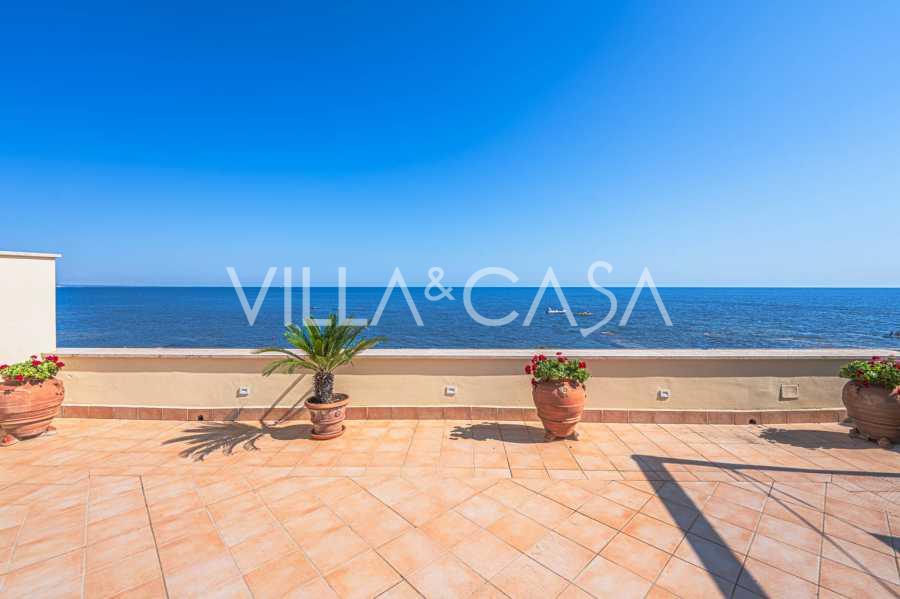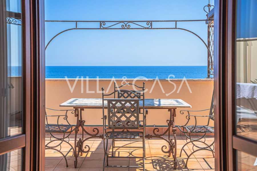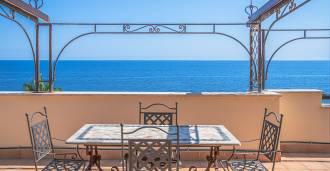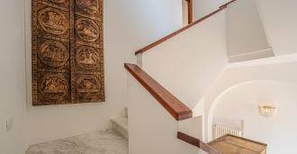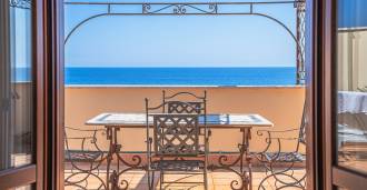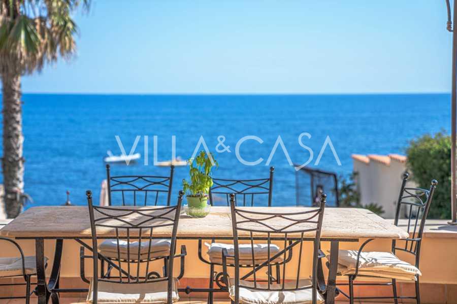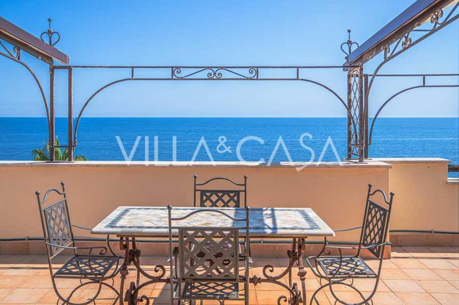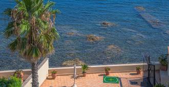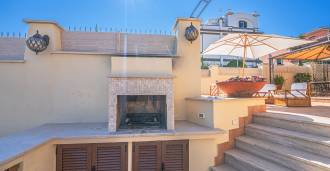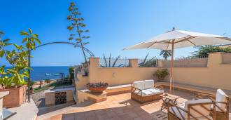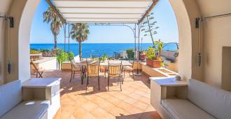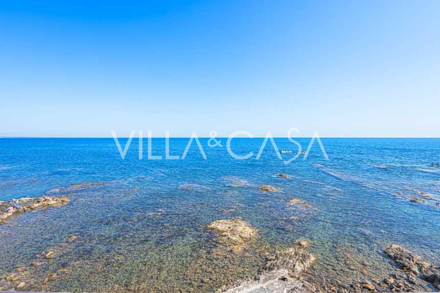 Okna oferują panoramiczny widok 180 stopni na morze, niebieski horyzont wypełnia każde wnętrze i rozciąga się aż do szerokich panoramicznych tarasów. Wnętrza, z wysokimi sufitami ponad trzy metry, terakotowymi podłogami z tamtych czasów, marmurowymi schodami i kominkiem, tworzą atmosferę wyrafinowanej, ponadczasowej elegancji.