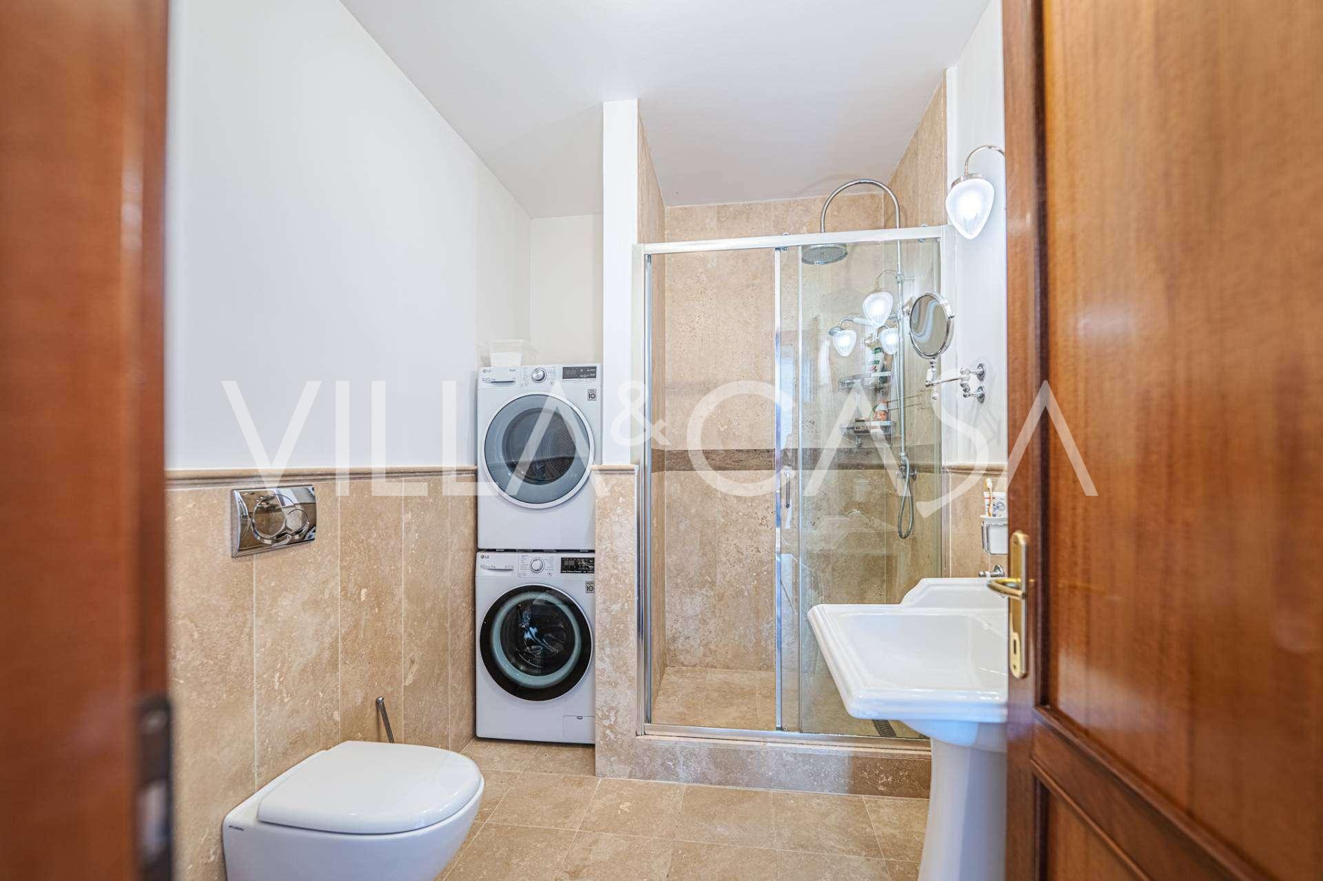 Rezydencja zajmuje jedną część wyrafinowanego bliźniaka, zapewniając jednocześnie pełną niezależność dzięki osobnemu wejściu, przestronnemu prywatnemu ogrodowi o powierzchni około 800 metrów kwadratowych oraz bezpośredniemu prywatnemu dostępowi do plaży, co jest rzadkością na wybrzeżu Lacjum.