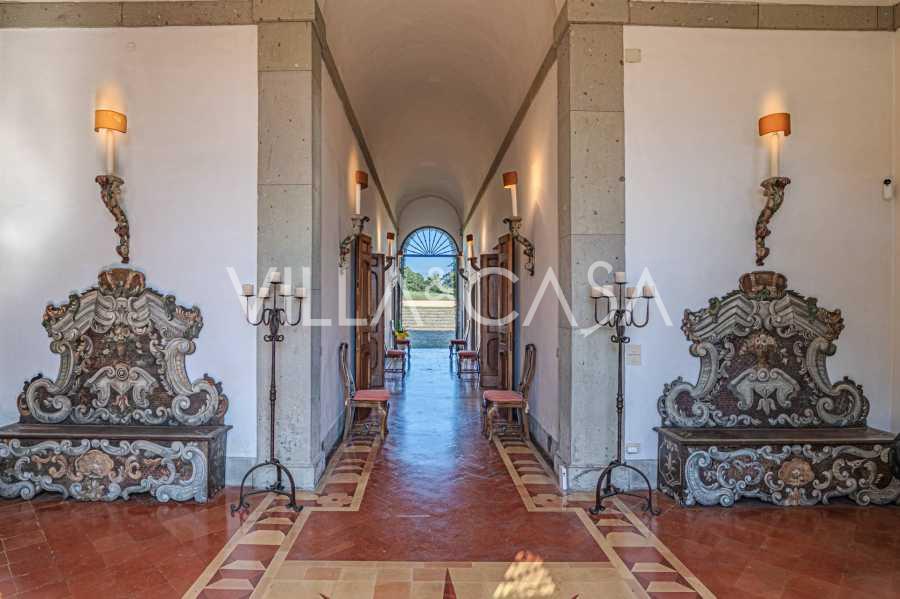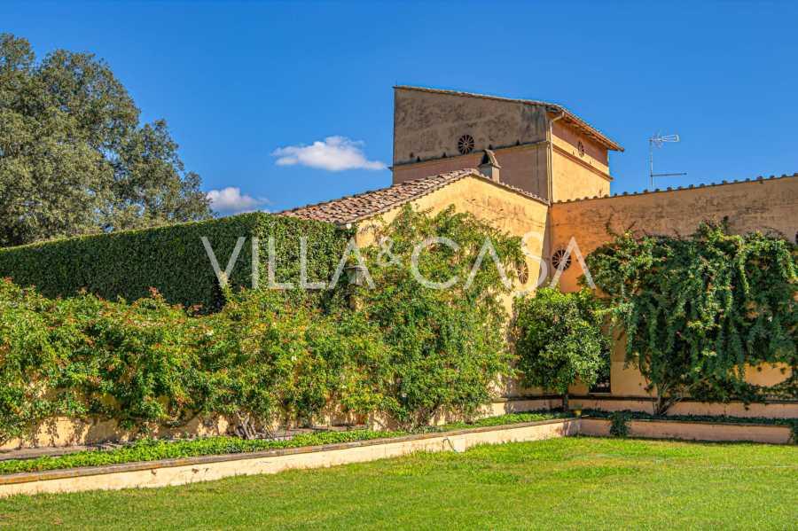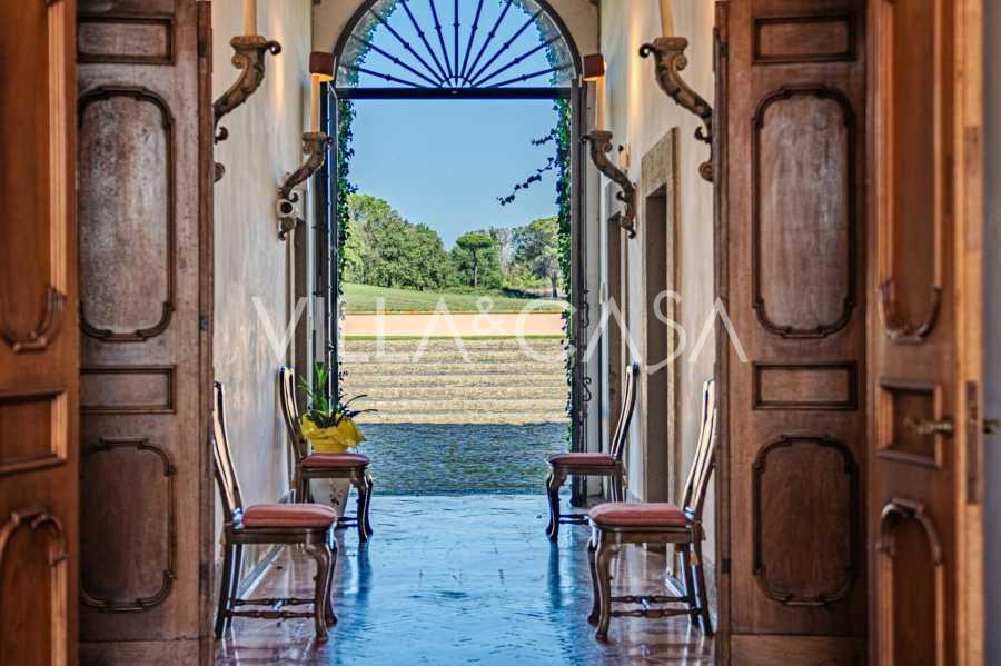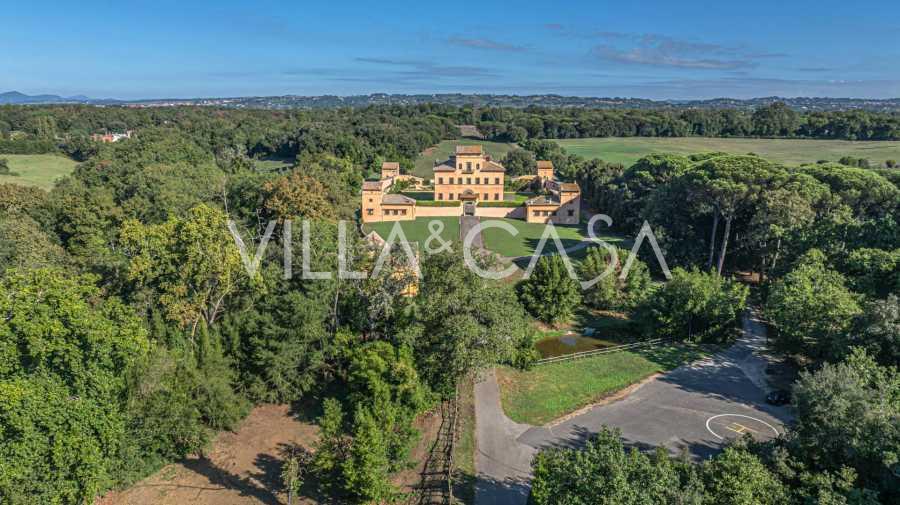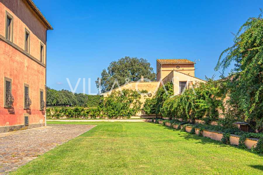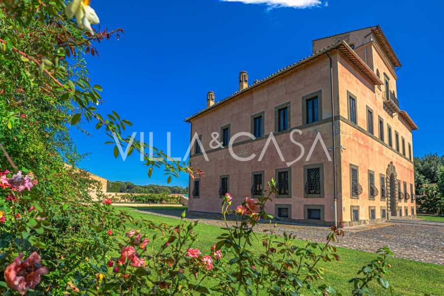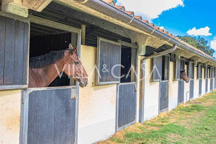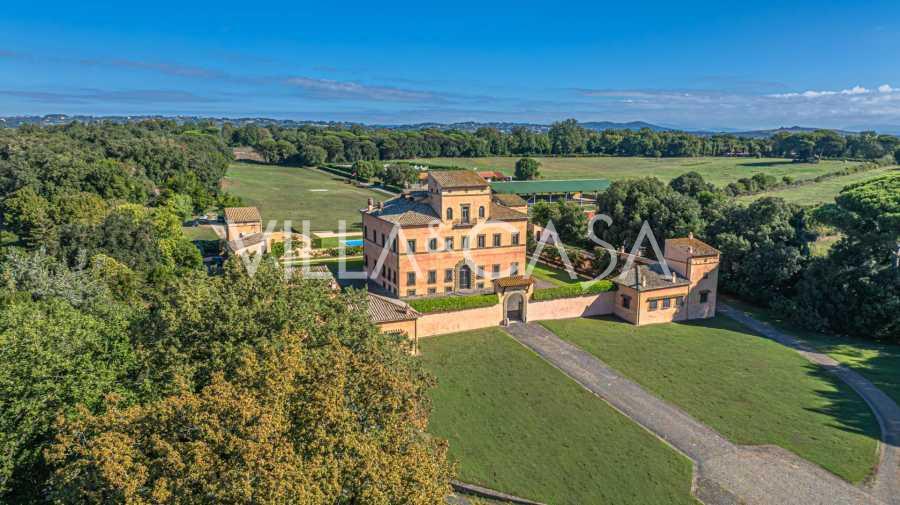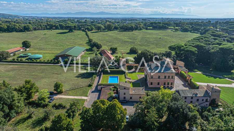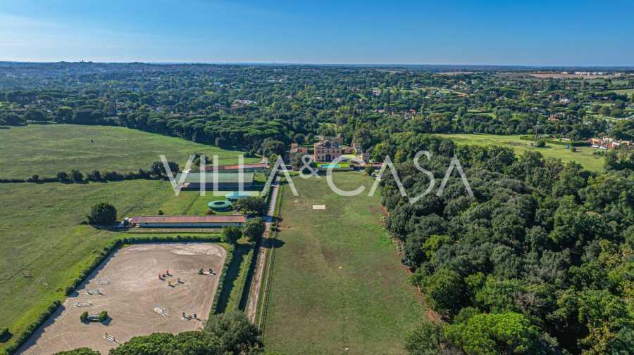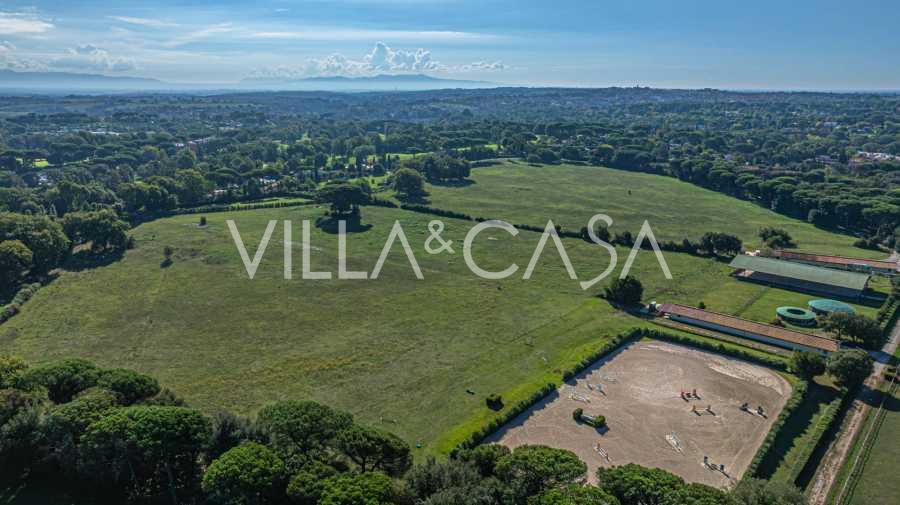 Zamek, położony zaledwie dwadzieścia kilometrów na północ od Rzymu, otoczony jest trzydziestoma hektarami zielonych łąk i starożytnych lasów, tworzących atmosferę pełnego odosobnienia i harmonii z naturą. Tutaj urodził się słynny koń wyścigowy Ribot. Obiekty jeździeckie spełniają najwyższe międzynarodowe standardy: dwie stajnie na dwadzieścia trzy i dwadzieścia pięć boksów - z siodlarniami, strefami pielęgnacji koni i przytulnymi apartamentami dla personelu. Na terenie kompleksu znajduje się również kryta ujeżdżalnia, kryta karuzela i przestronne pastwiska, odpowiednie do treningu i zawodów. Zamek sąsiaduje z jednym z najbardziej prestiżowych klubów golfowych w Europie i posiada własne lądowisko dla helikopterów. Starożytne etruskie jaskinie na terenie posiadłości dodają szczególnego uroku i historycznego znaczenia miejscu.